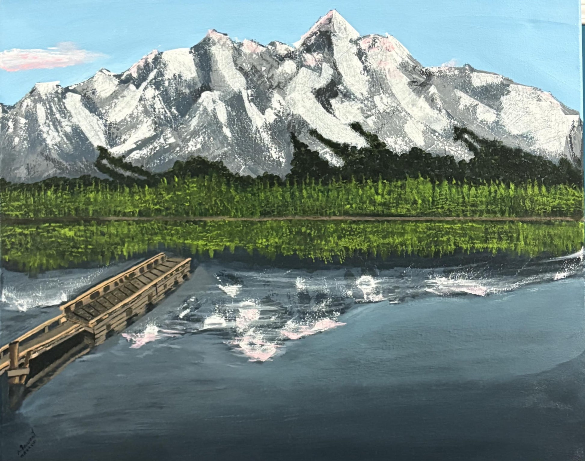 This 20 x 24 acrylic painting captures the stunning reflection of British Columbia’s majestic mountains with expert precision. The carefully layered brushwork conveys the serene beauty and grandeur of the natural landscape, bringing depth and tranquility to any space. Ideal for collectors and connoisseurs seeking a refined representation of Canada’s wilderness, this artwork offers both visual impact and a connection to the serene mountain environment.