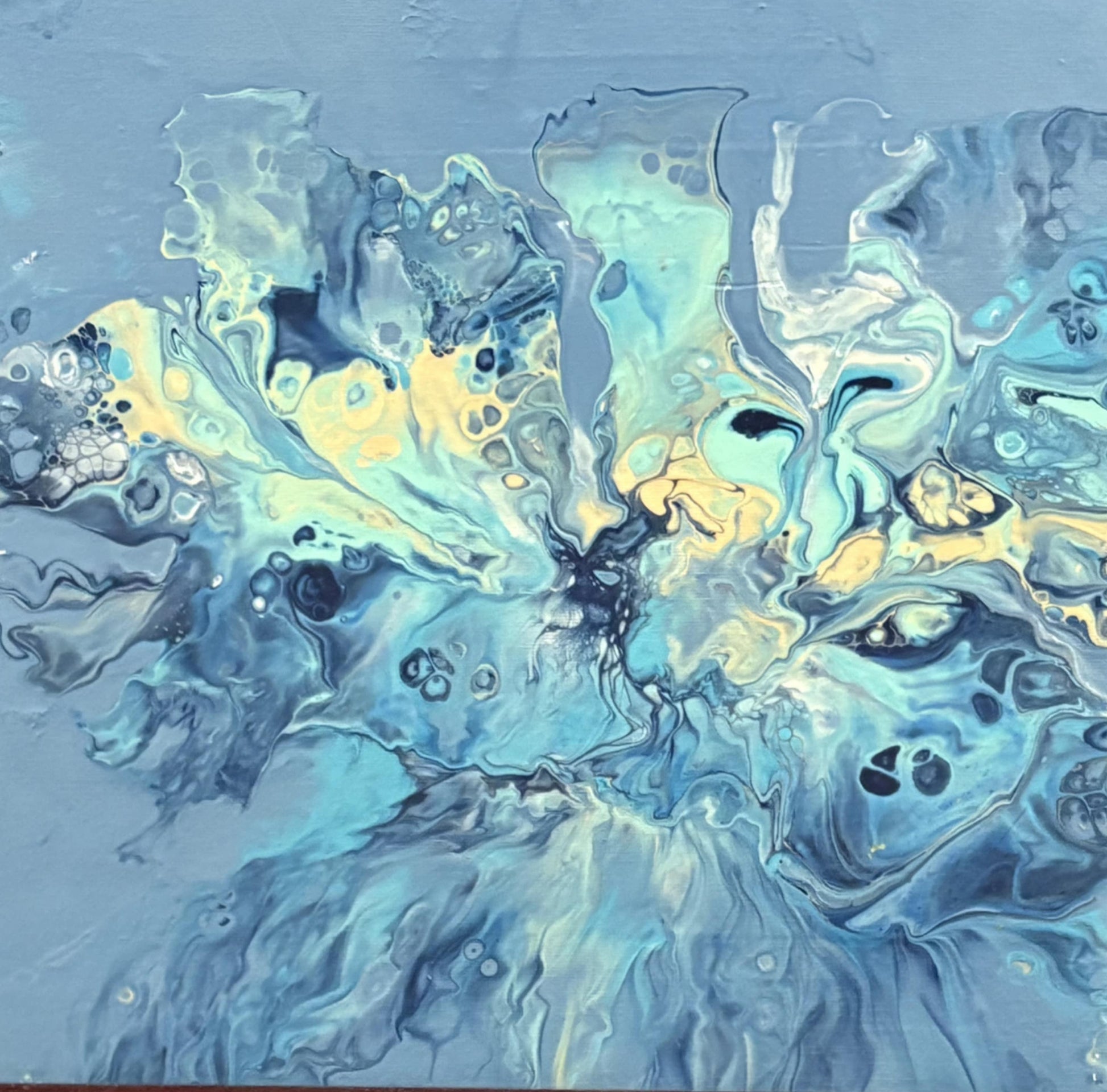 Soul's Divinity is a 12 x 12 acrylic fluid abstract that captures the essence of a soul at rest. Through flowing colors and harmonious movement, this piece evokes a serene inner peace, inviting viewers to experience calm and balance. Its modest size makes it versatile for various spaces, while the fluid technique offers a dynamic yet soothing visual expression of tranquility.